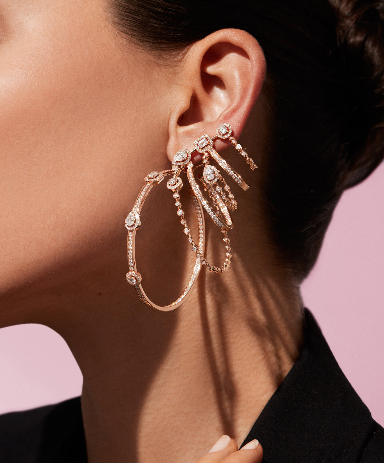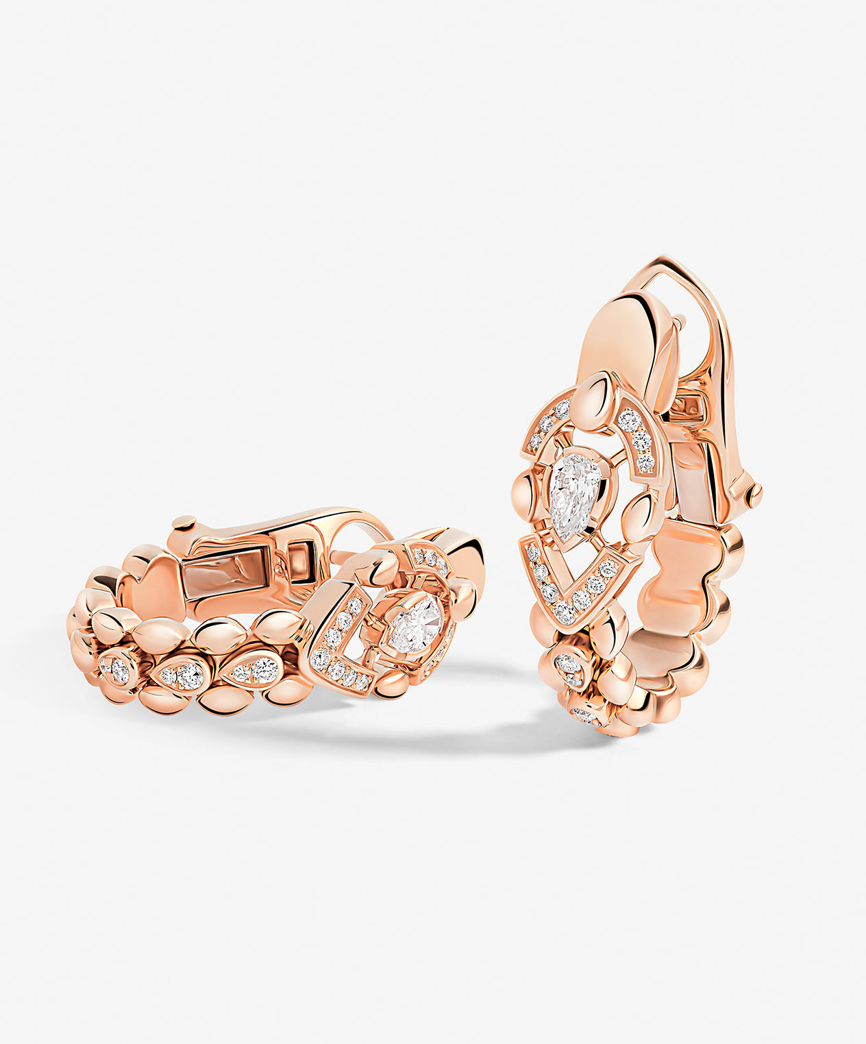 Dualité Iconic earrings crafted in 18k rose gold and set with round brilliant and pear-shape diamonds.