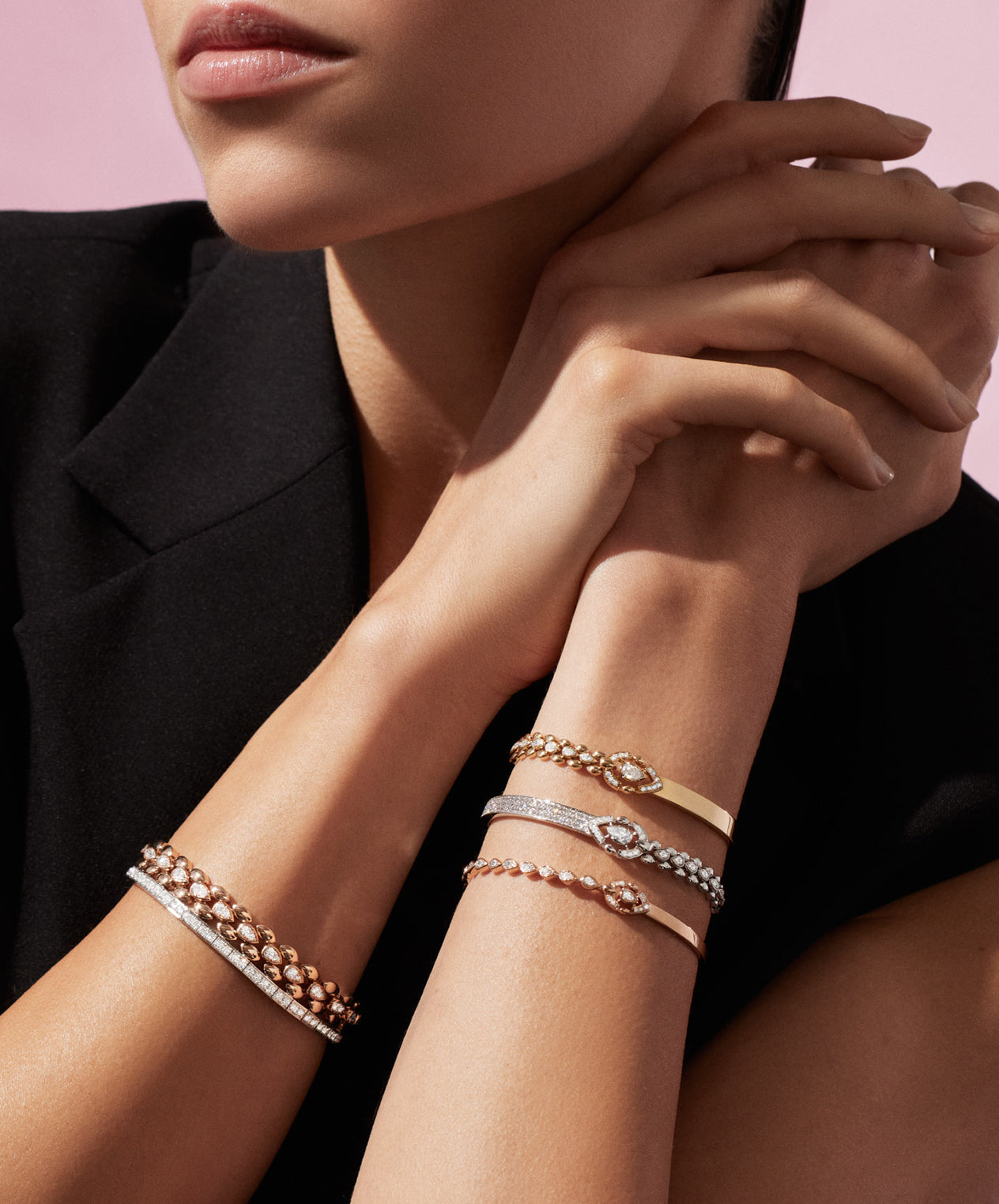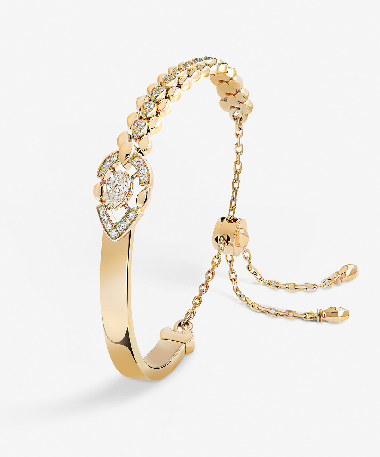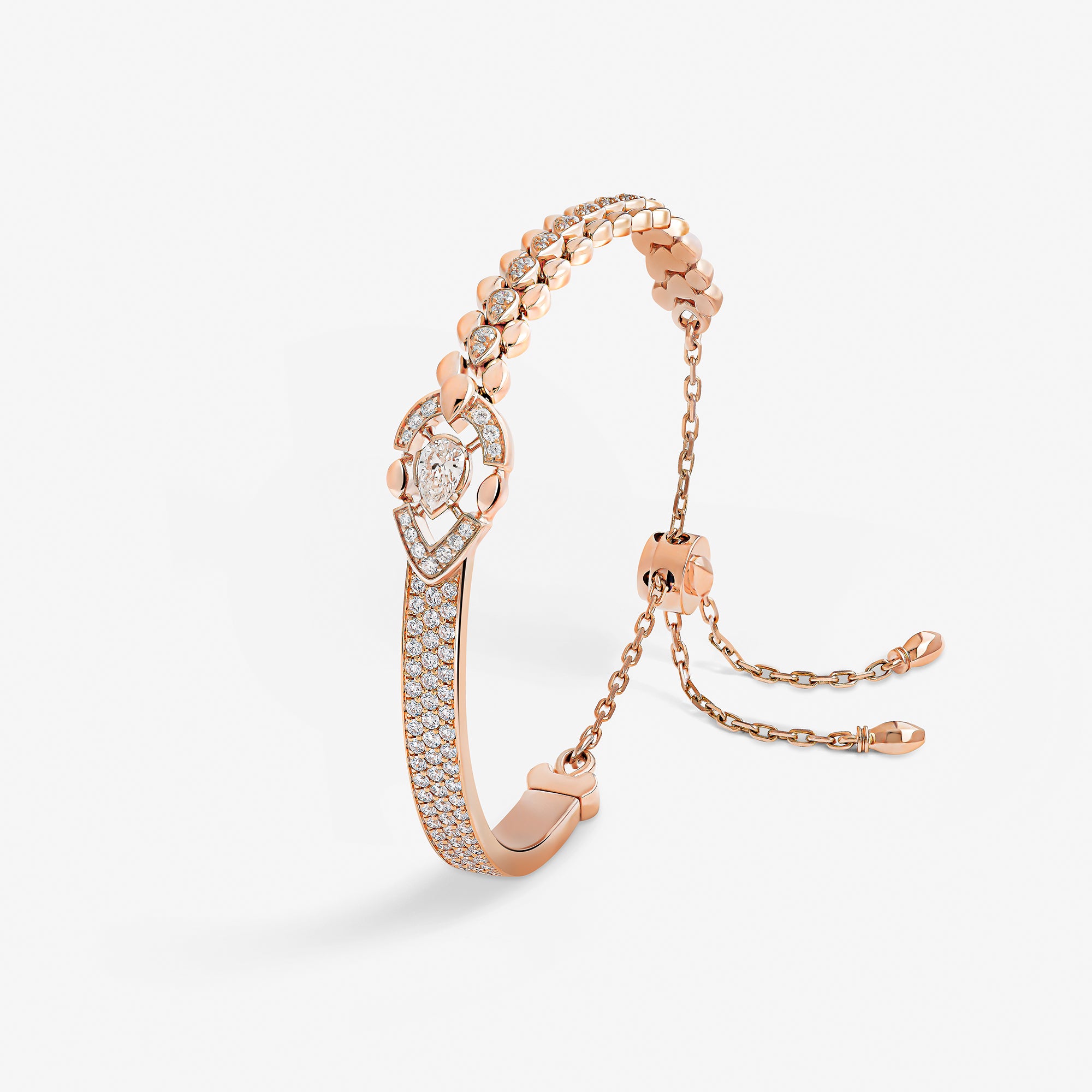 Dualité Iconic bracelet crafted in 18K rose gold and set with round brilliant diamonds and central pear-shaped diamond.