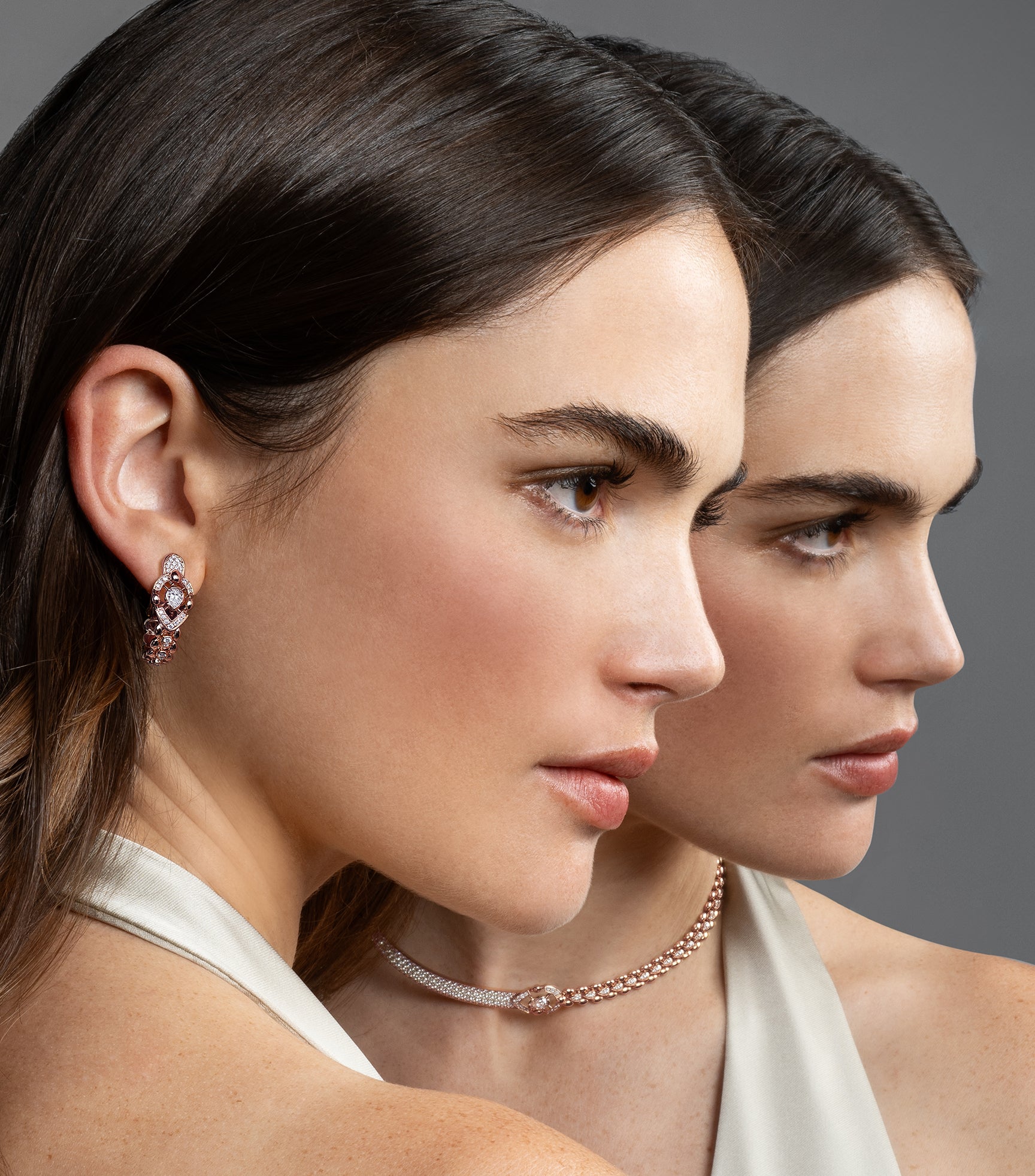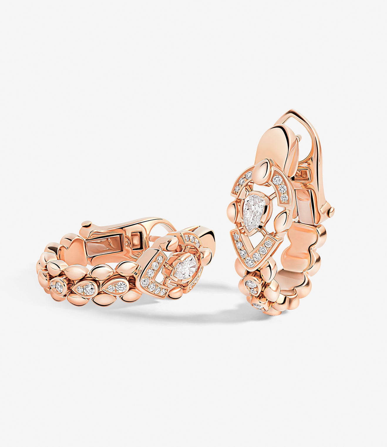 Dualité Iconic earrings crafted in 18k rose gold and set with round brilliant and pear-shape diamonds.