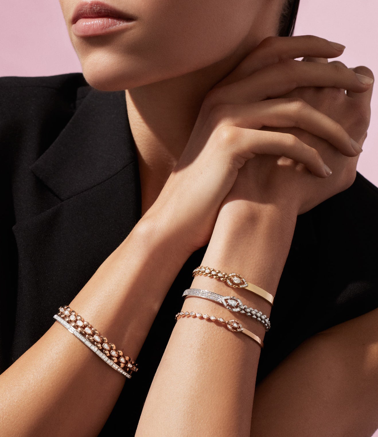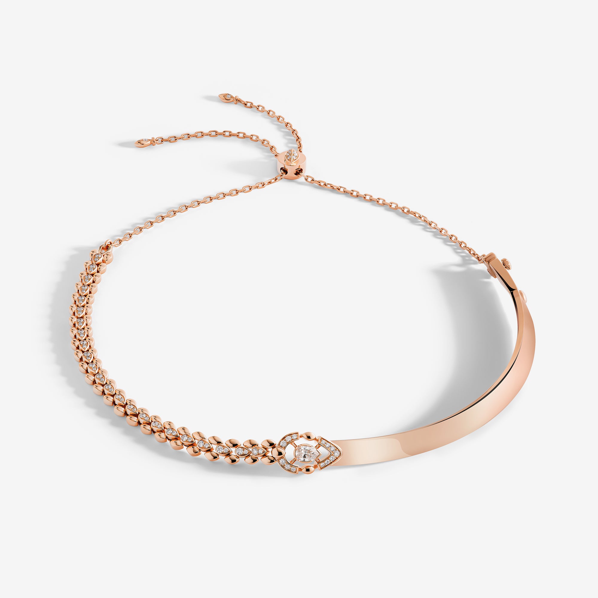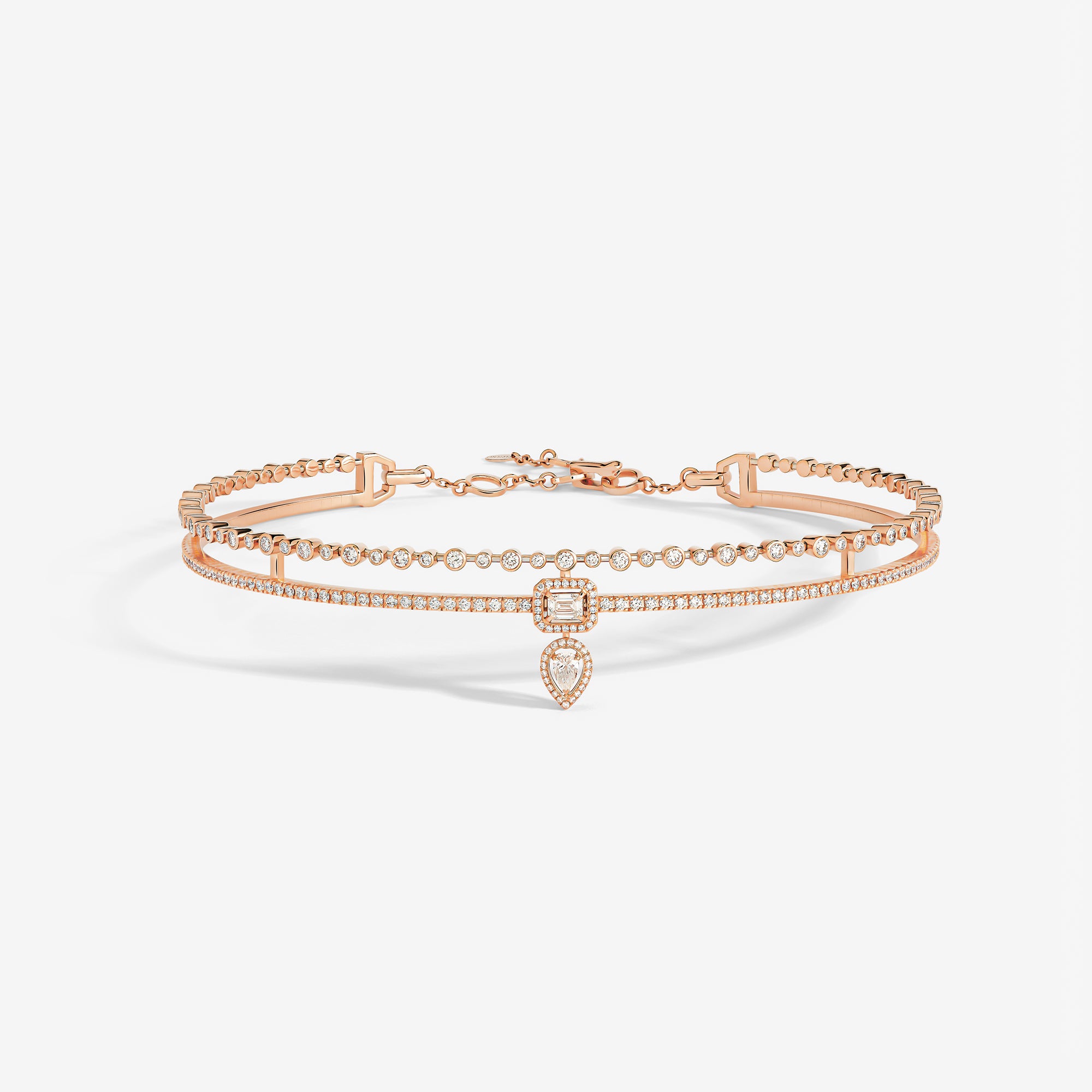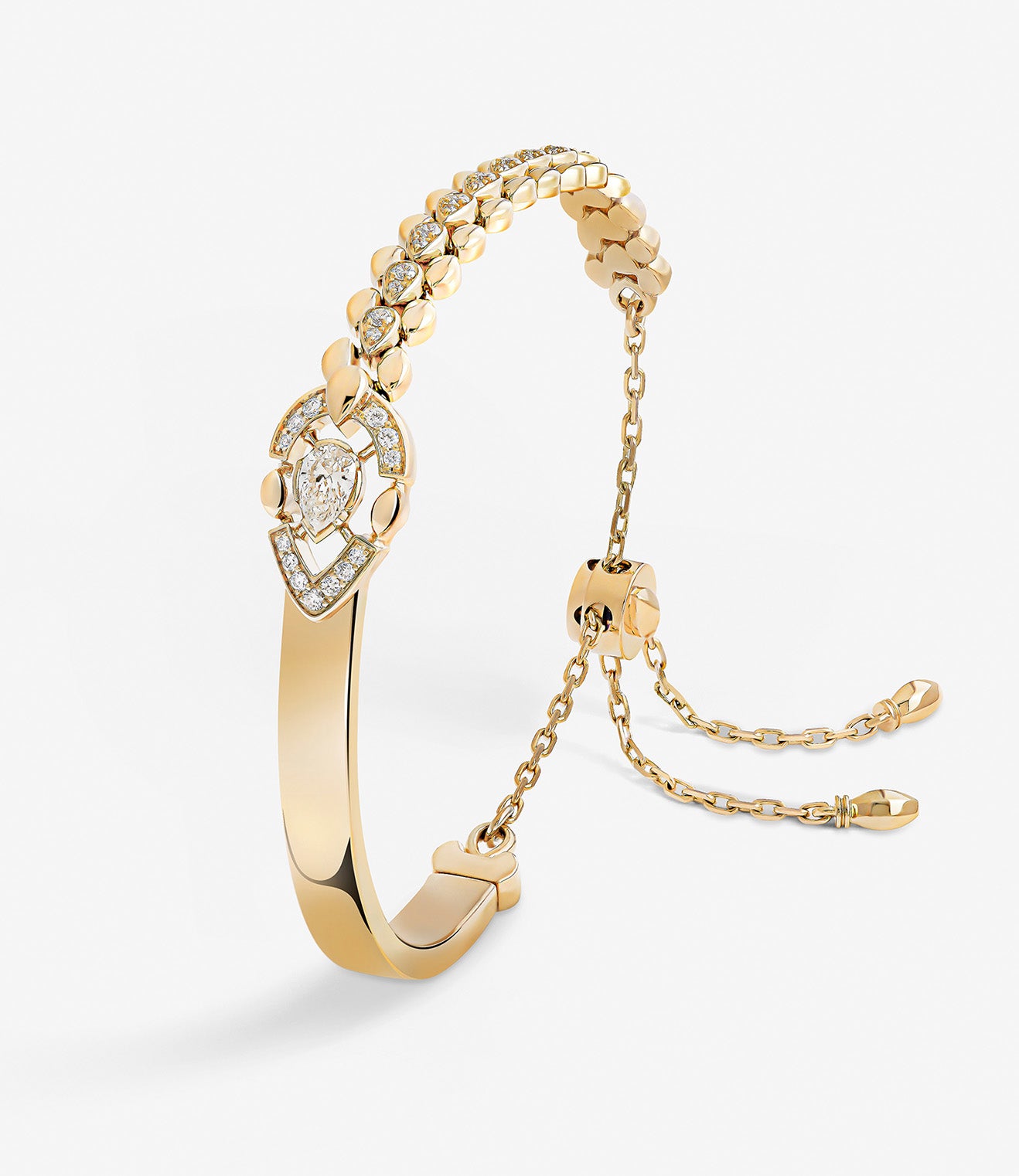 Dualité Iconic bracelet crafted in 18K rose gold and set with round brilliant diamonds and central pear-shaped diamond.