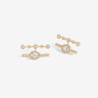 Trilogie Essence Signature stud earrings with pear-shaped diamonds crafted in 18K yellow gold and set with round brilliant diamonds and peaar-shaped diamonds.