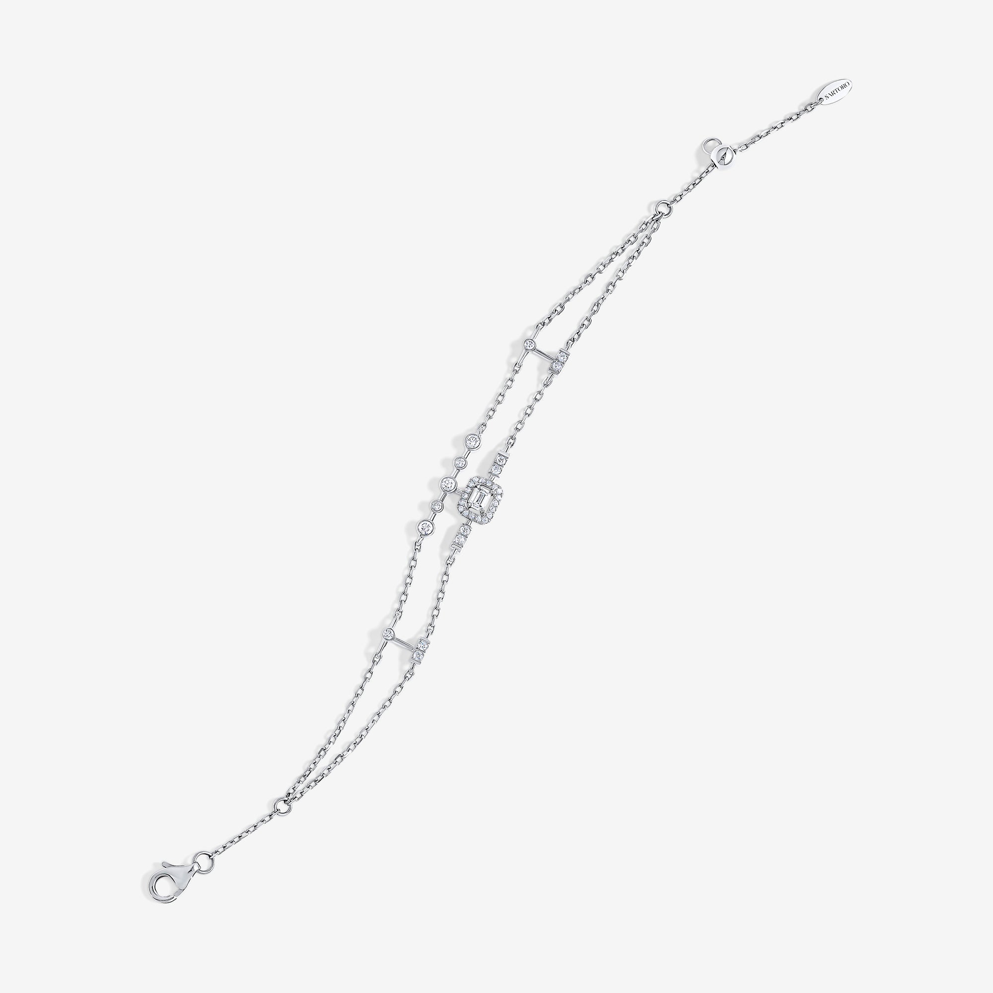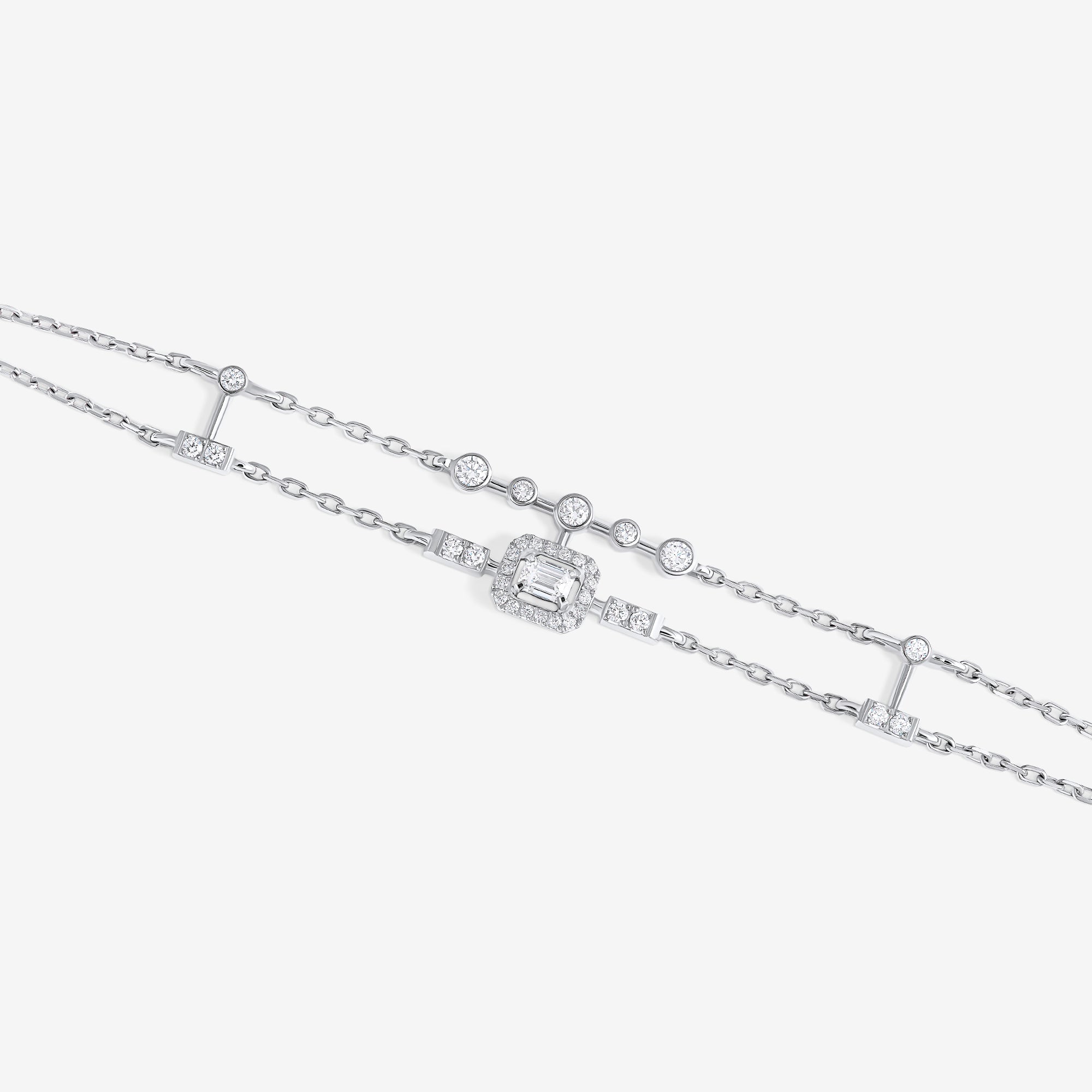 Trilogie Essence chain bracelet crafted in 18K white gold and set with round brilliant and emerald cut diamonds.