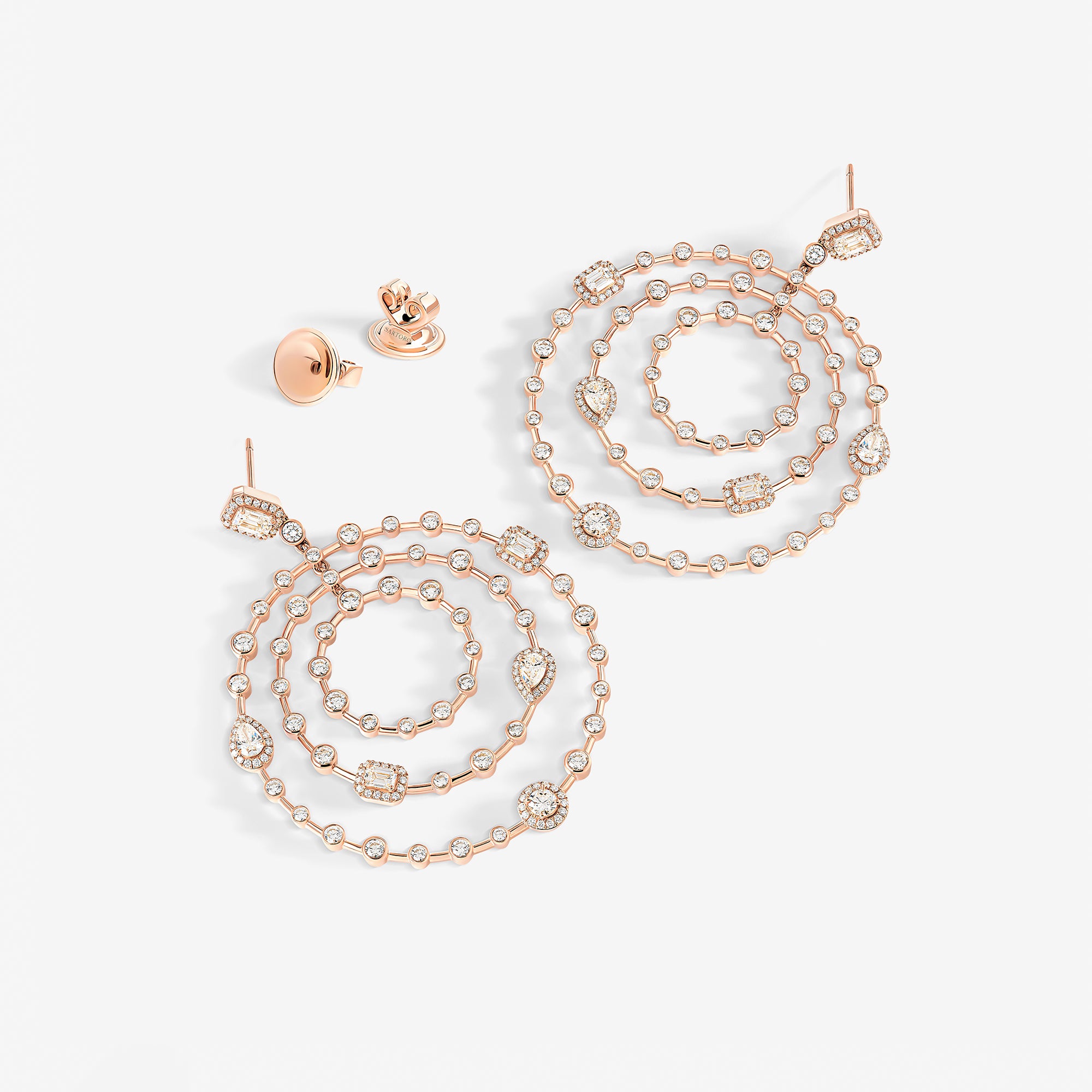 Emblematic of the House values and aesthetic codes, the pieces dazzle with the symbol of the trinity, elevated through three diamond cuts – brilliant, emerald, and pear –, which are brought together within each piece for a unique harmony.