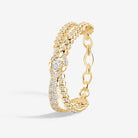 Each piece of this emblematic collection features two distinct halves united by a pear-cut central diamond, playing on contrasts in texture, gold crafting, and gem-setting methods. Their encounter embodies an irresistible fusion where contrasting forces attract.