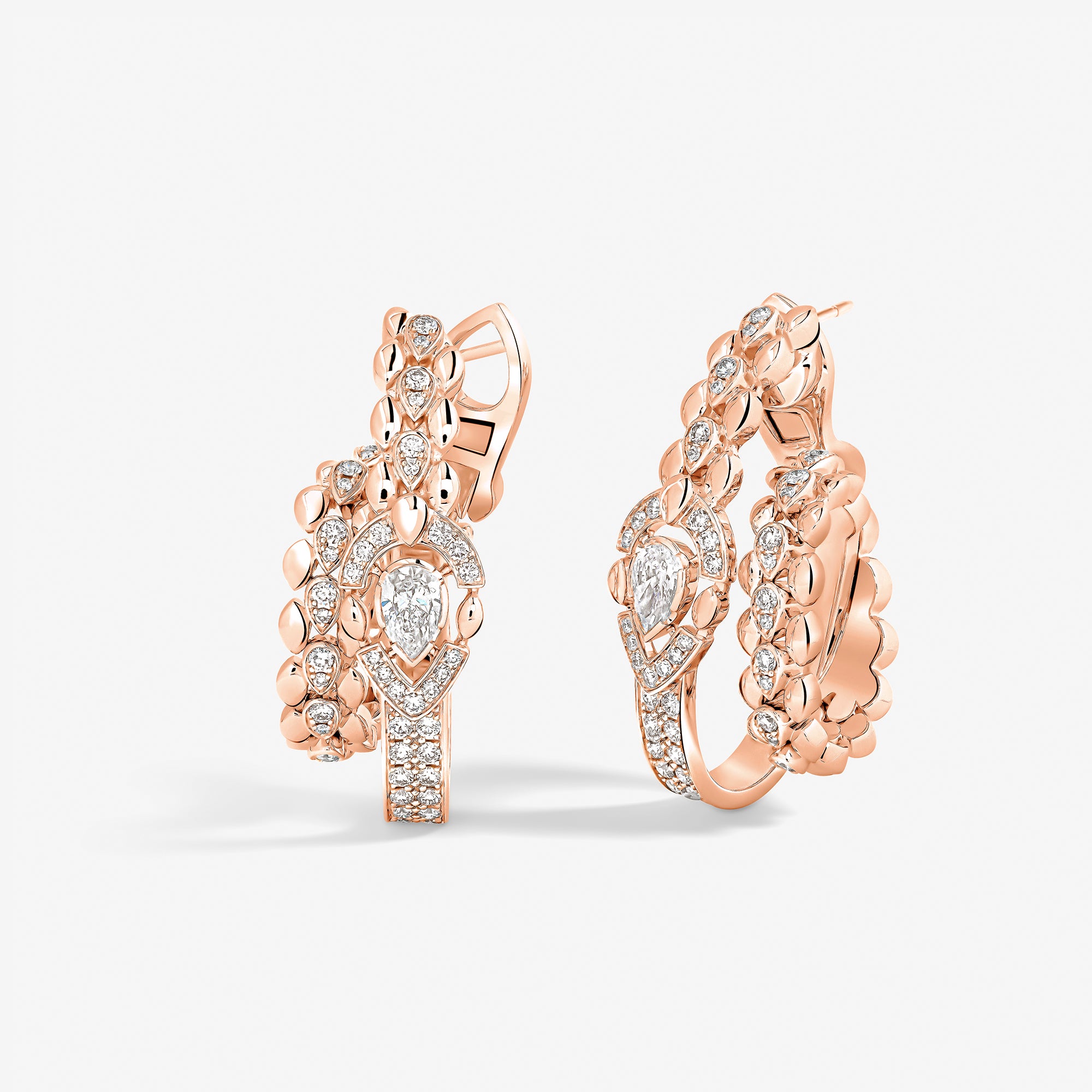 Dualité Statement earrings crafted in 18K rose gold and set with round brilliant and pear-shape diamonds.