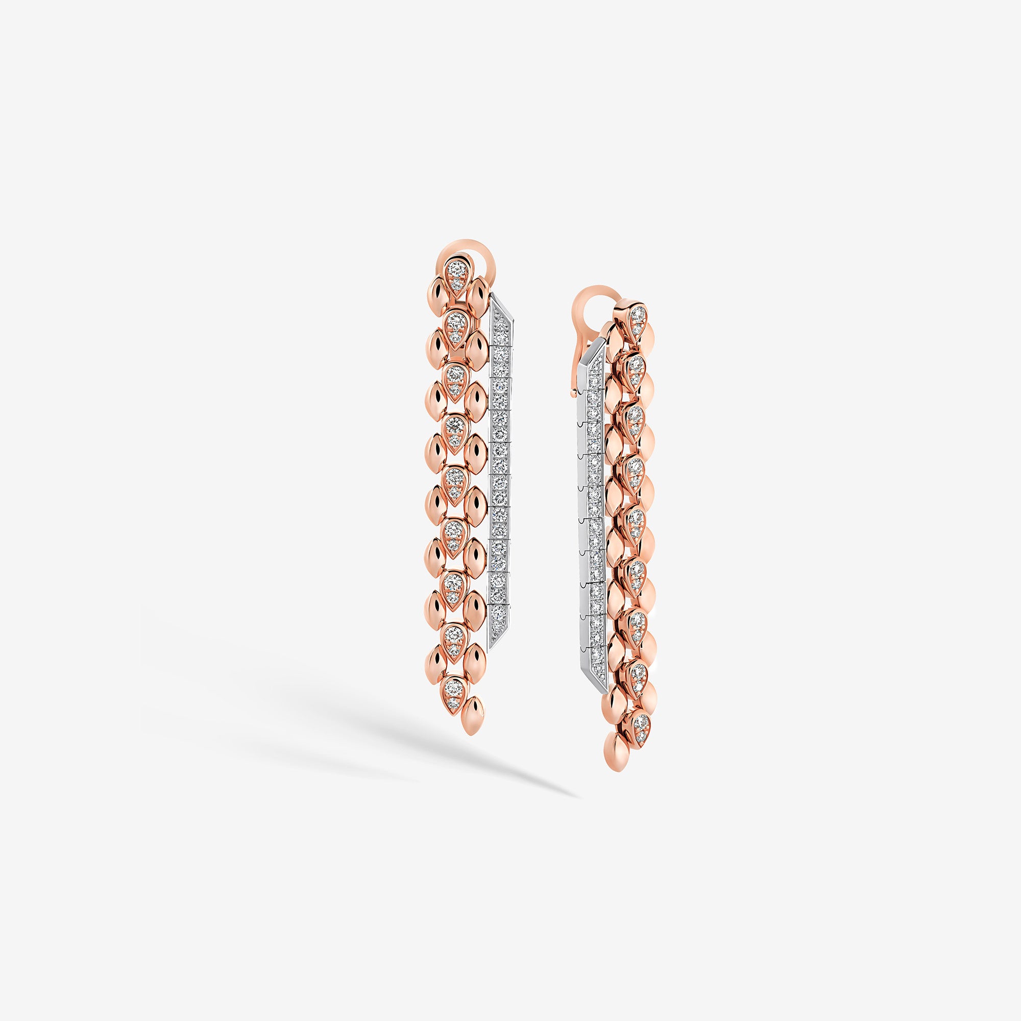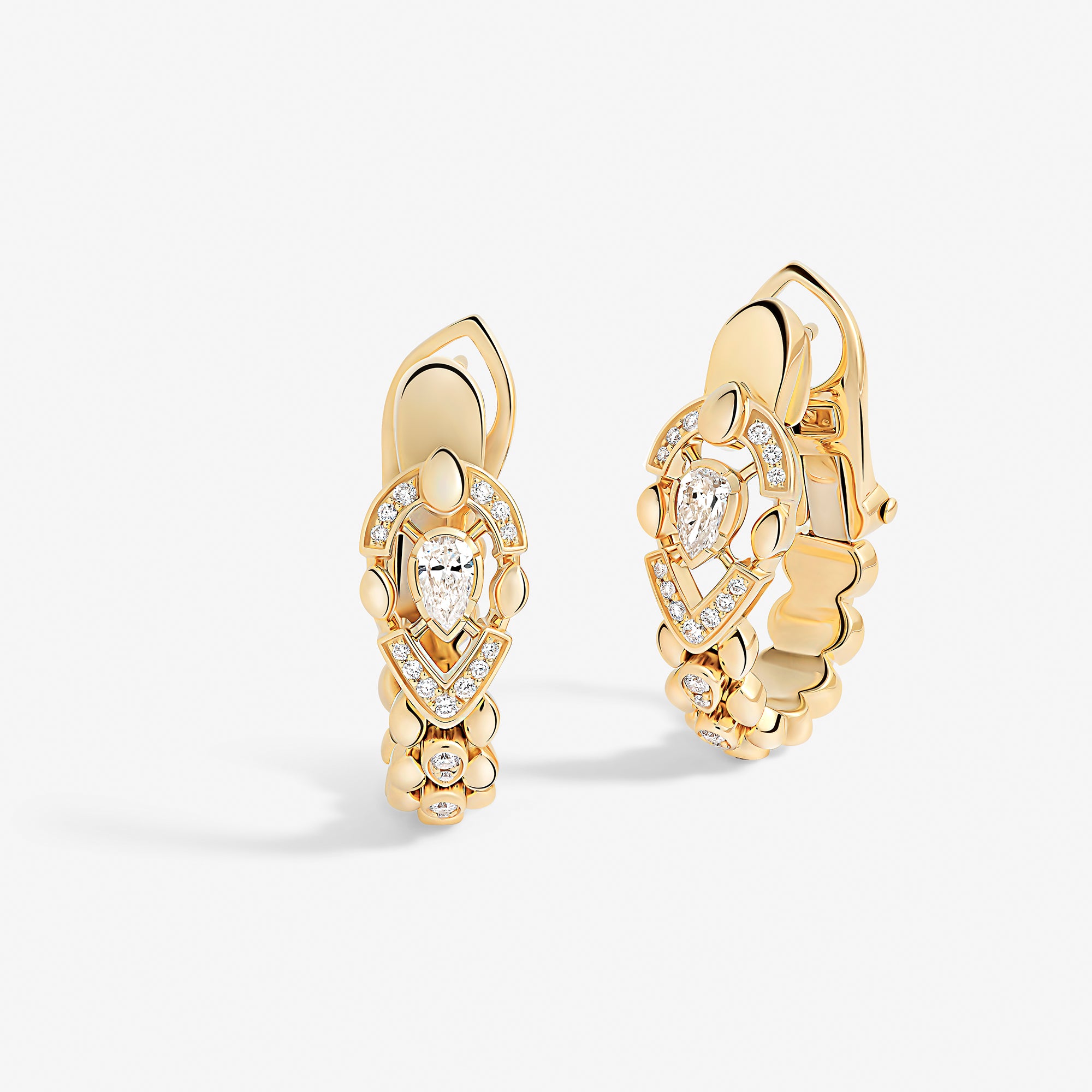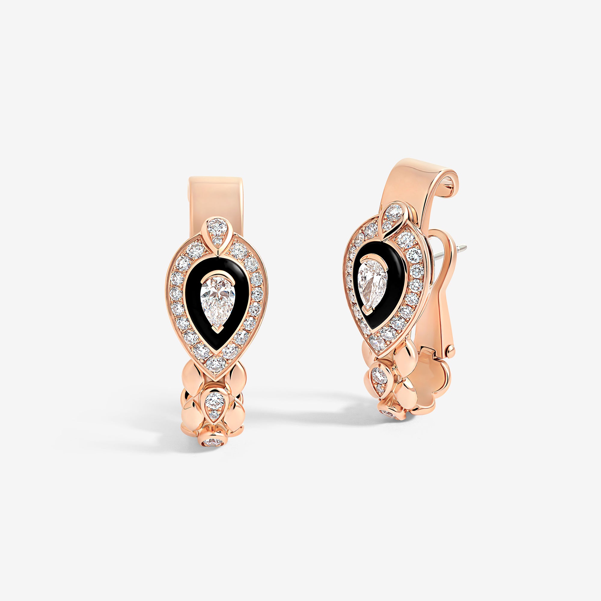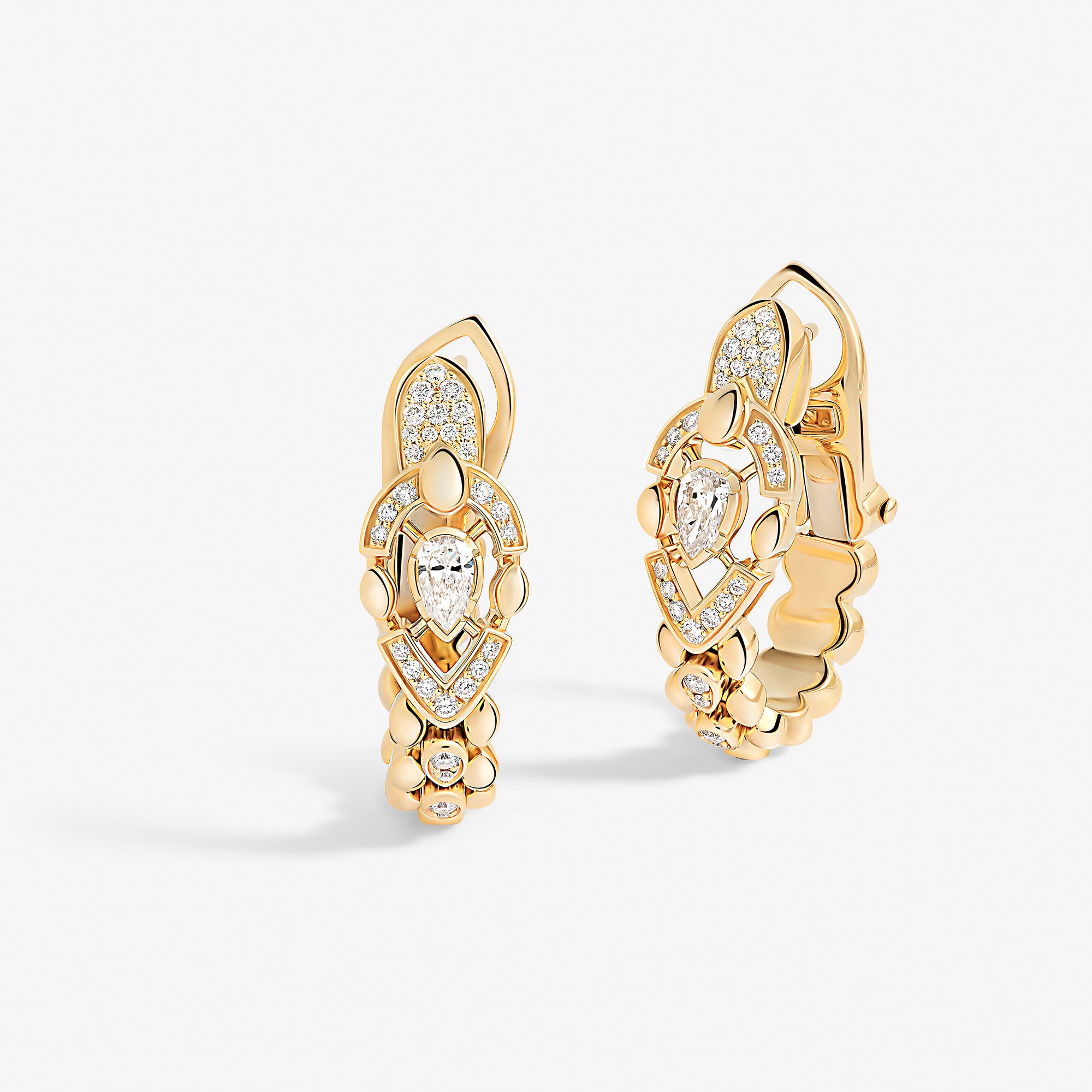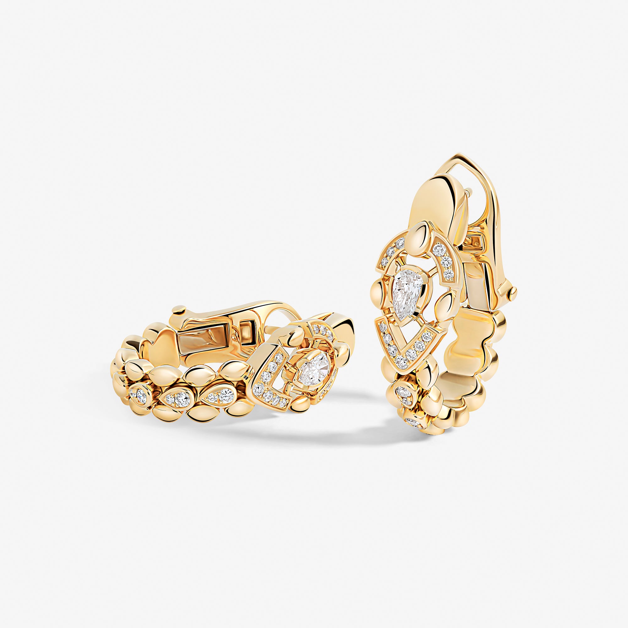 Each piece of this emblematic collection features two distinct halves united by a pear-cut central diamond, playing on contrasts in texture, gold crafting, and gem-setting methods. Their encounter embodies an irresistible fusion where contrasting forces attract.