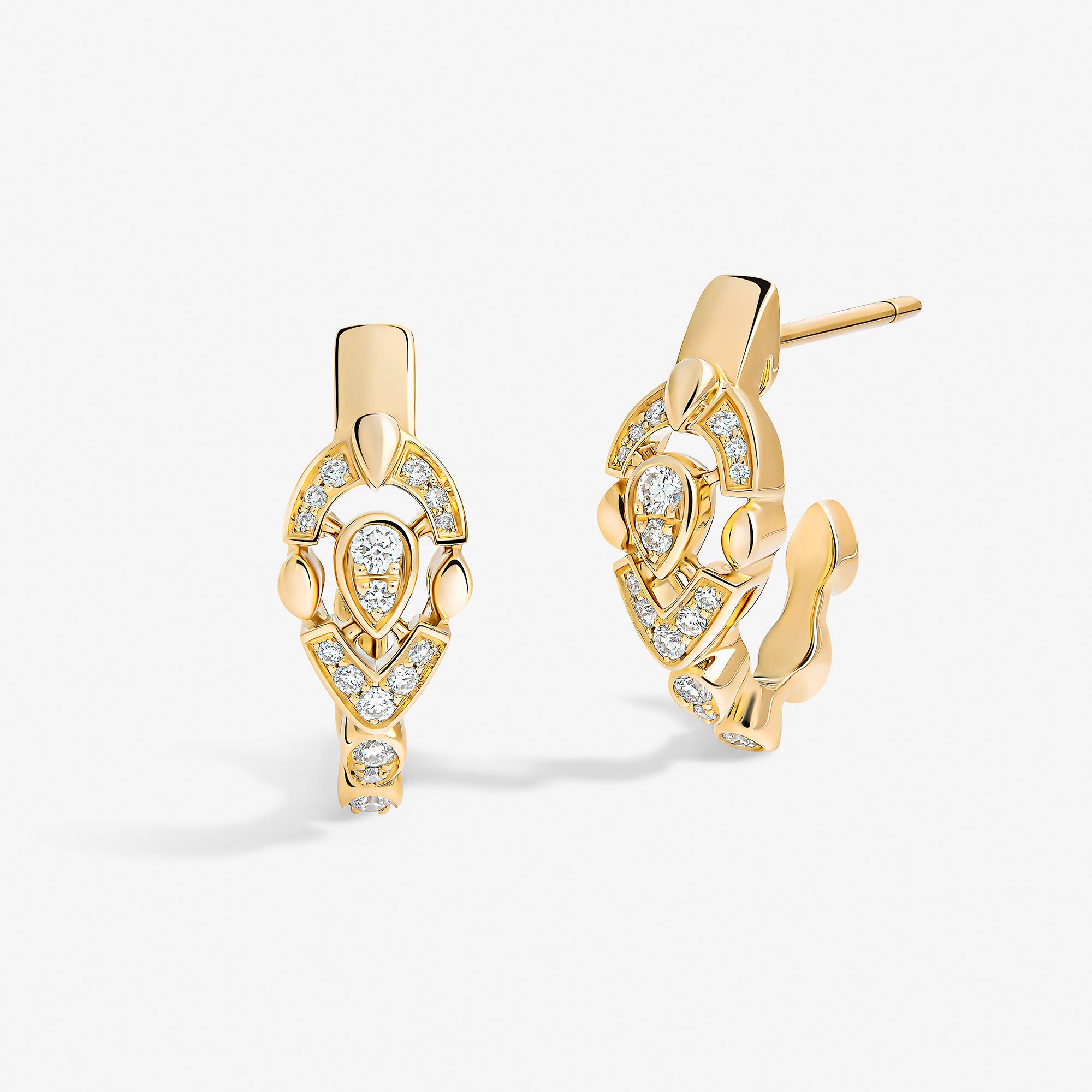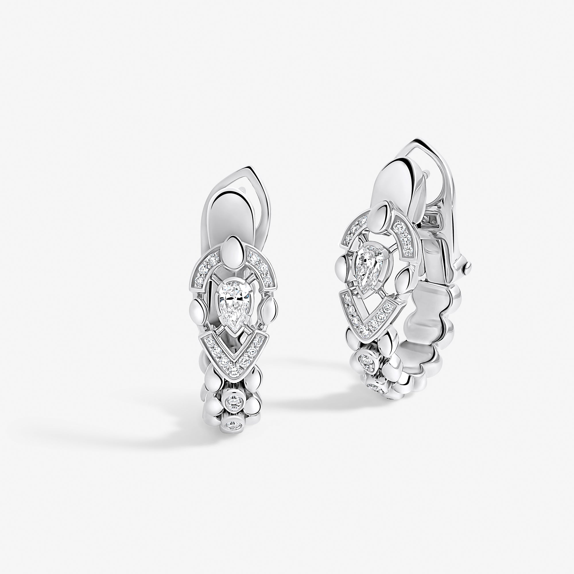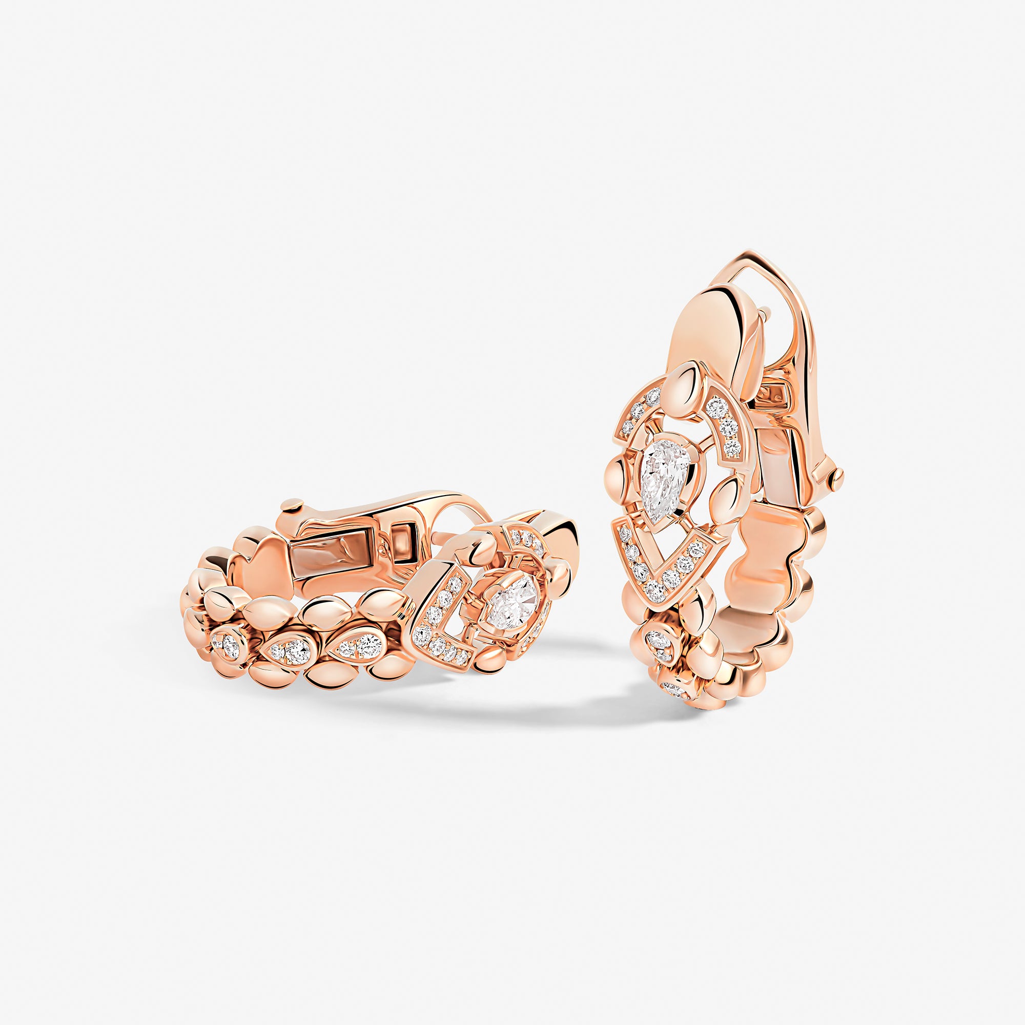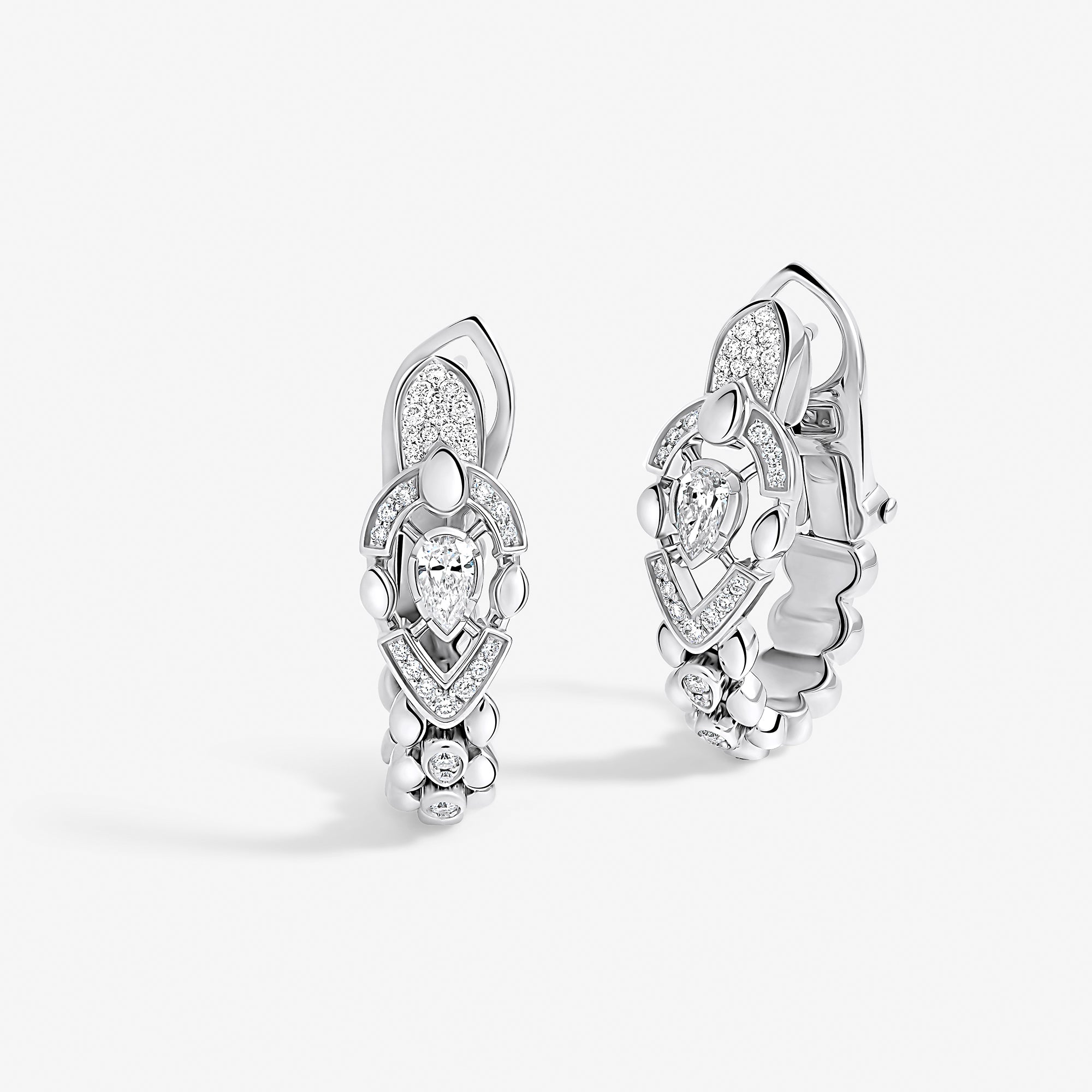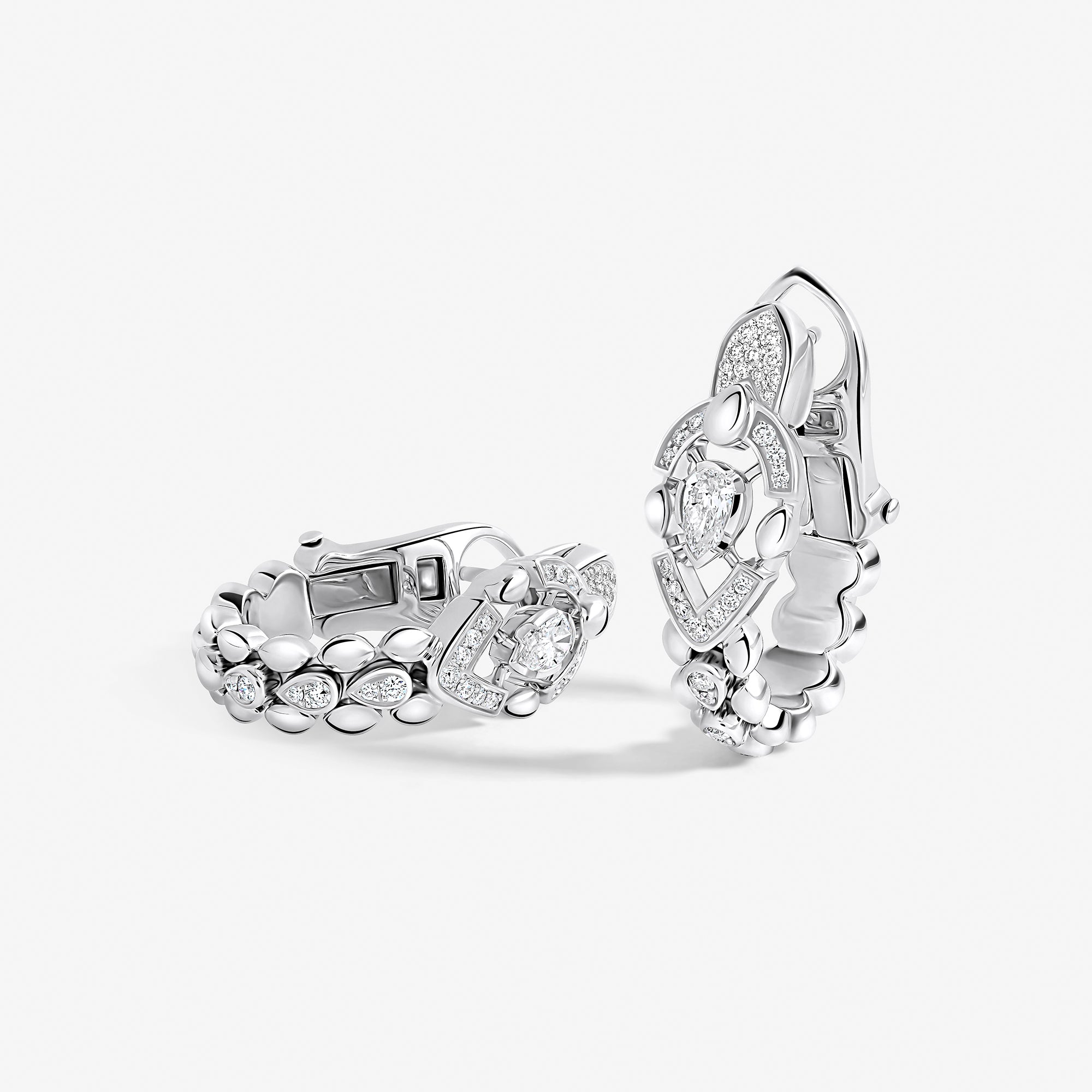 Each piece of this emblematic collection features two distinct halves united by a pear-cut central diamond, playing on contrasts in texture, gold crafting, and gem-setting methods. Their encounter embodies an irresistible fusion where contrasting forces attract.
