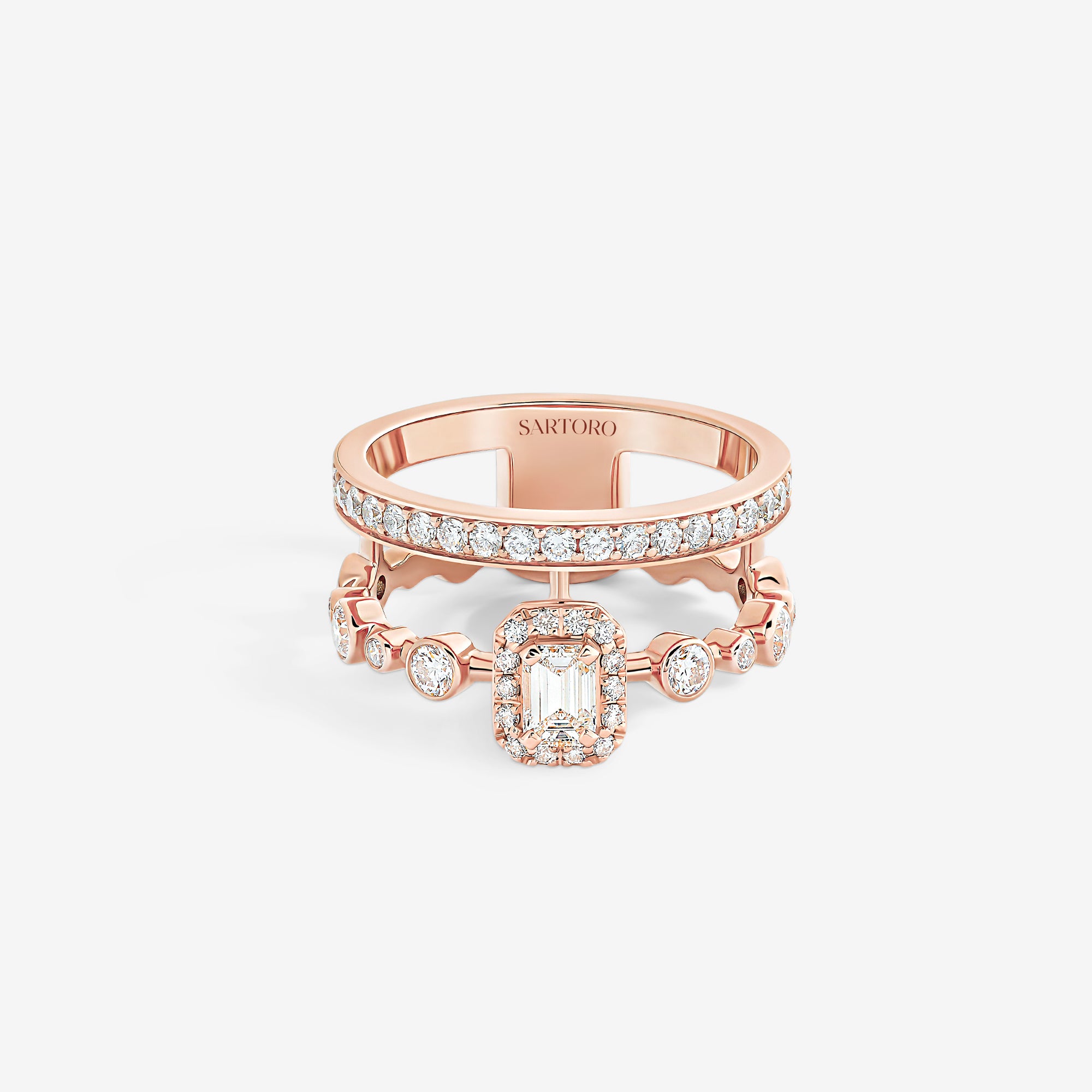 Emblematic of the House values and aesthetic codes, the pieces dazzle with the symbol of the trinity, elevated through three diamond cuts – brilliant, emerald, and pear –, which are brought together within each piece for a unique harmony.
