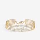Trilogie Radiance Signature five row flexible choker crafted in 18K yellow gold and set with round brilliant, emerald cut and pear-shaped diamonds.
