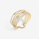 Trilogie Allure Iconic bangle crafted in 18K yellow gold and set with round brilliant, emerald cut and pear-shaped diamonds.