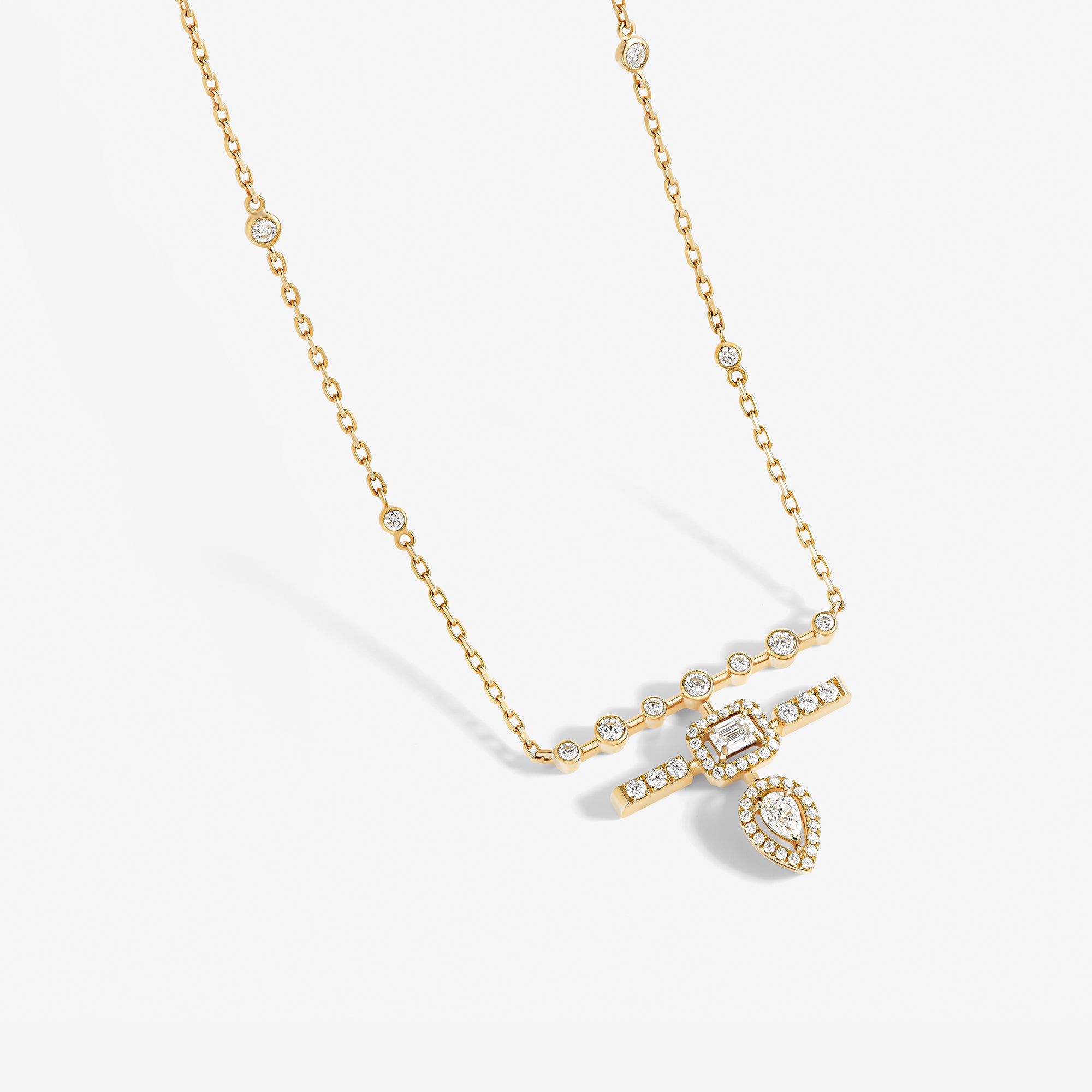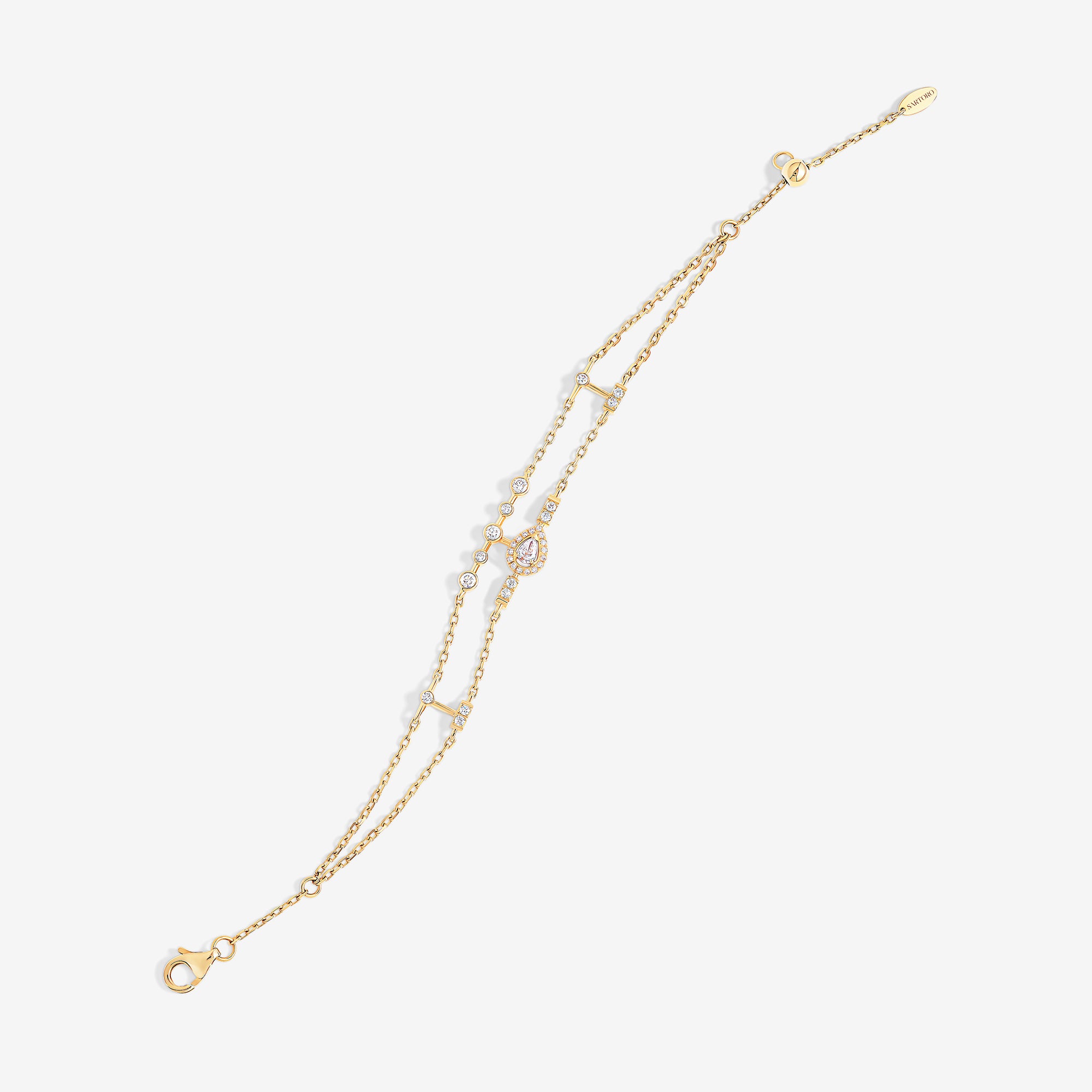Trilogie Essence chain bracelet crafted in 18K yellow gold and set with round brilliant and pear-shaped diamonds.