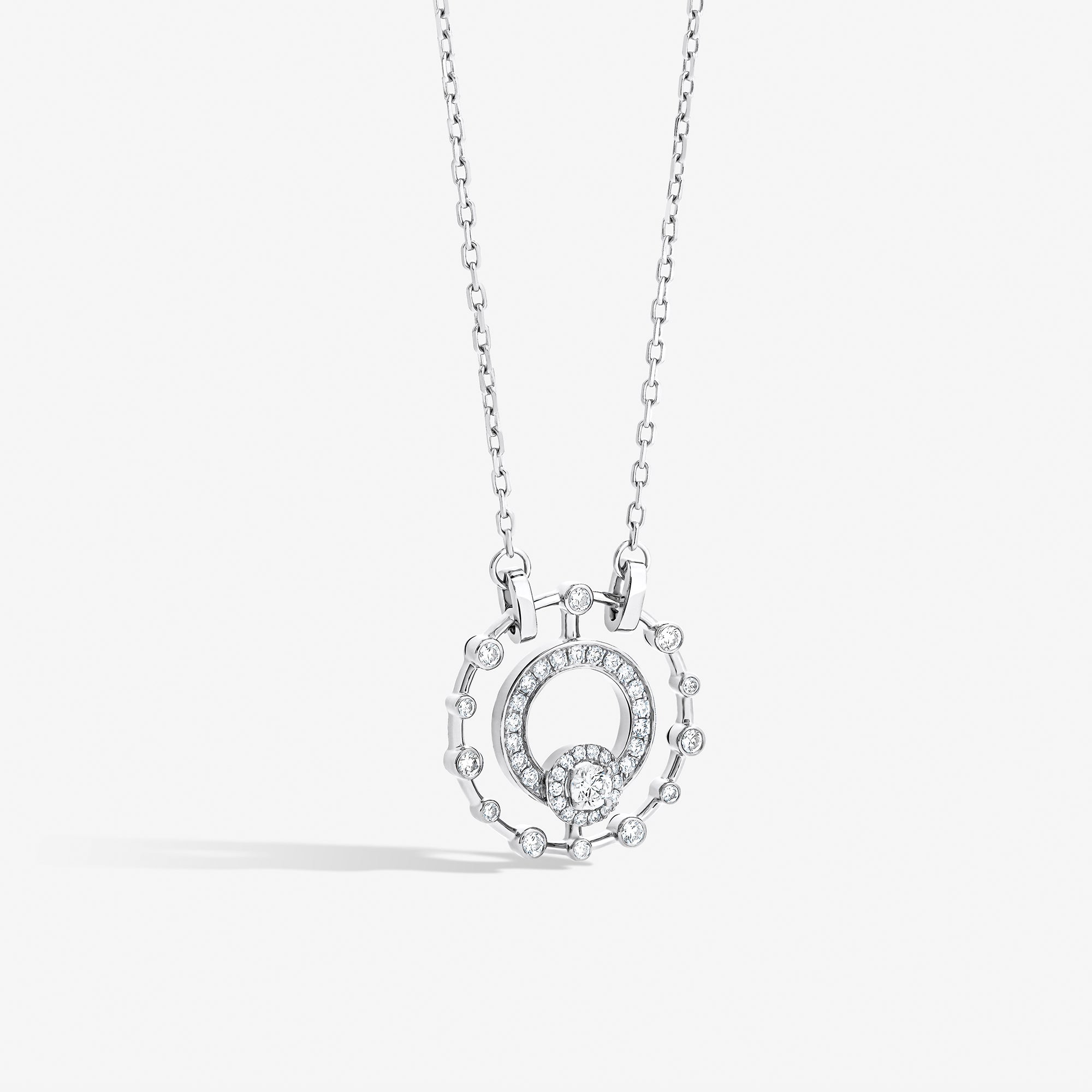 Trilogie Radiance Signature small pendant with round brilliant diamond crafted in 18K white gold and set with round brilliant diamonds.