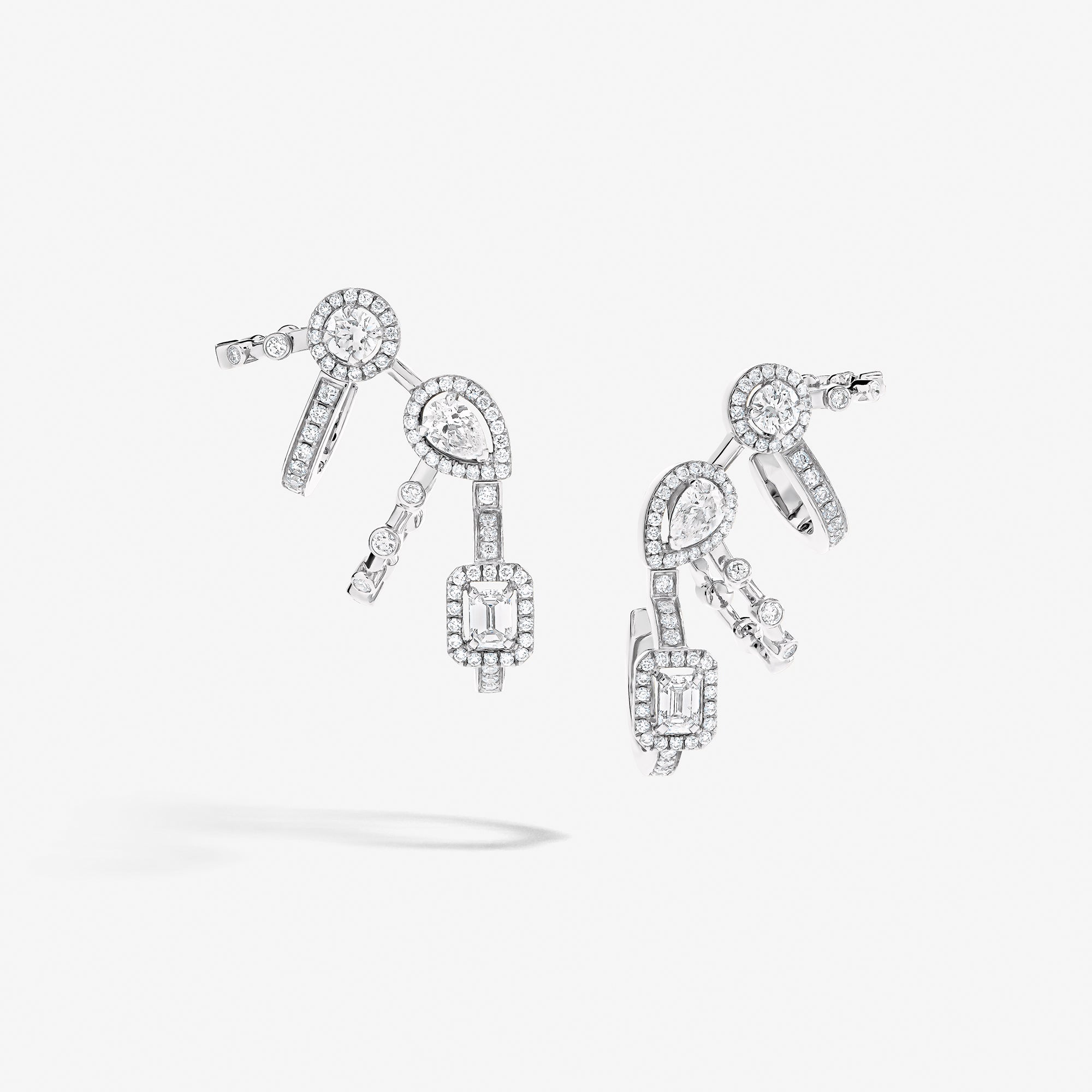 Emblematic of the House values and aesthetic codes, the pieces dazzle with the symbol of the trinity, elevated through three diamond cuts – brilliant, emerald, and pear –, which are brought together within each piece with a unique harmony.