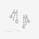 Trilogie Radiance Signature small earrings crafted in 18K white gold and set with round brilliant, emerlad cut and pear-shaped diamonds.