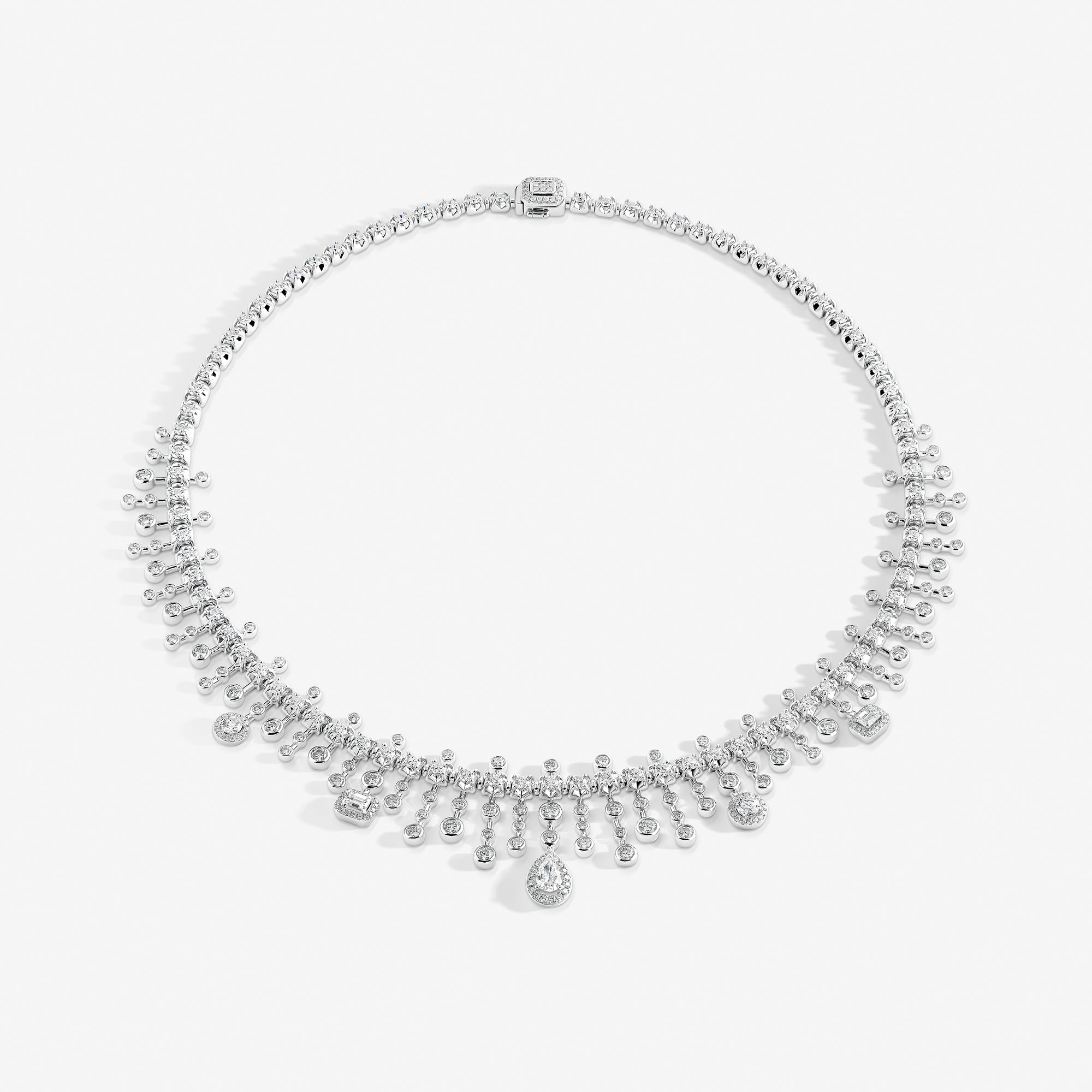 Trilogie Radiance small necklace crafted in 18K white gold and set with round brilliant, emerald cut and pear-shaped diamonds.