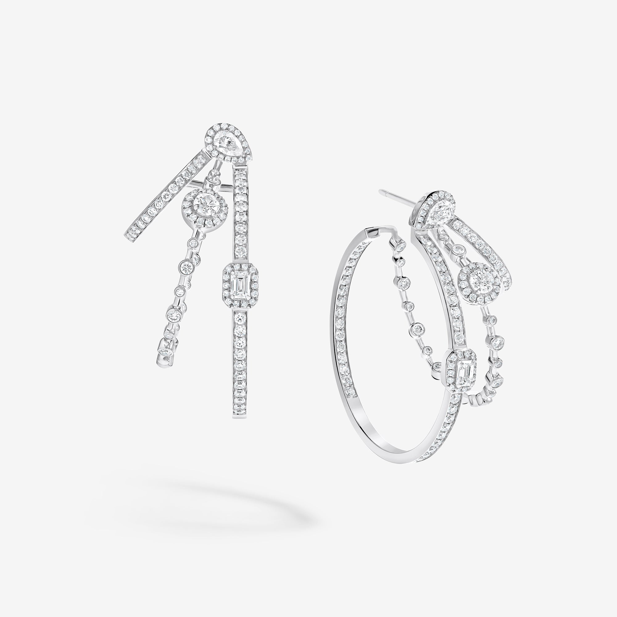 Emblematic of the House values and aesthetic codes, the pieces dazzle with the symbol of the trinity, elevated through three diamond cuts – brilliant, emerald, and pear –, which are brought together within each piece for a unique harmony.
