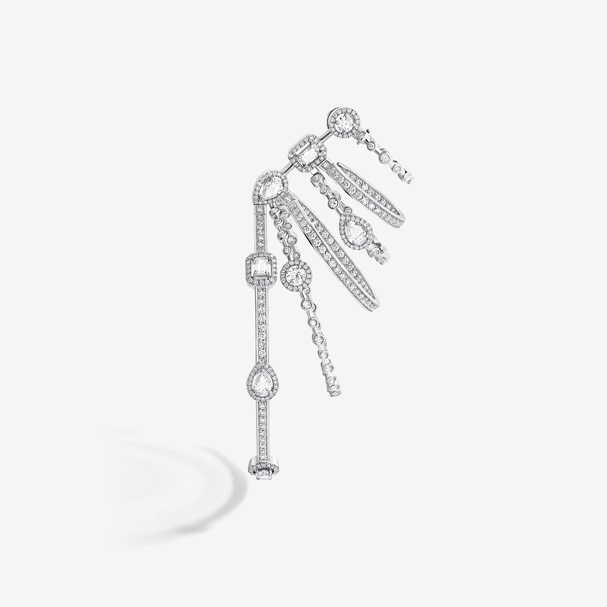 Trilogie Allure Iconic bangle crafted in 18K white gold and set with round brilliant, emerald cut and pear-shaped diamonds.