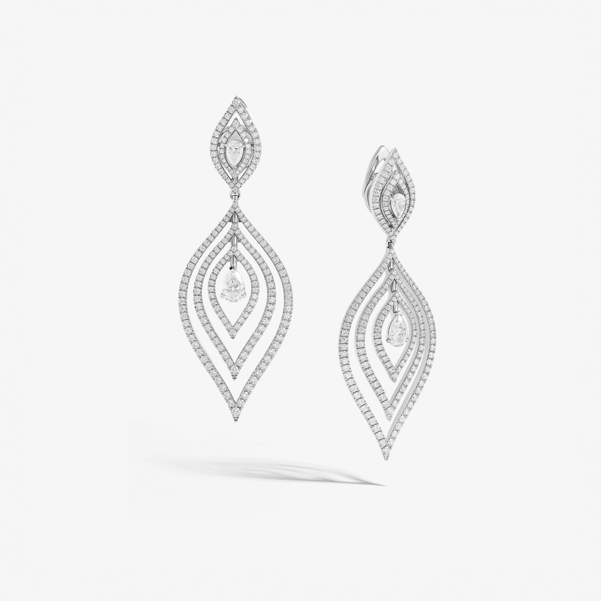 Ondes Legacy pendant crafted in 18K white gold and set with round brilliant diamonds and a 0.70 carat GIA certified central pear-shaped diamond.