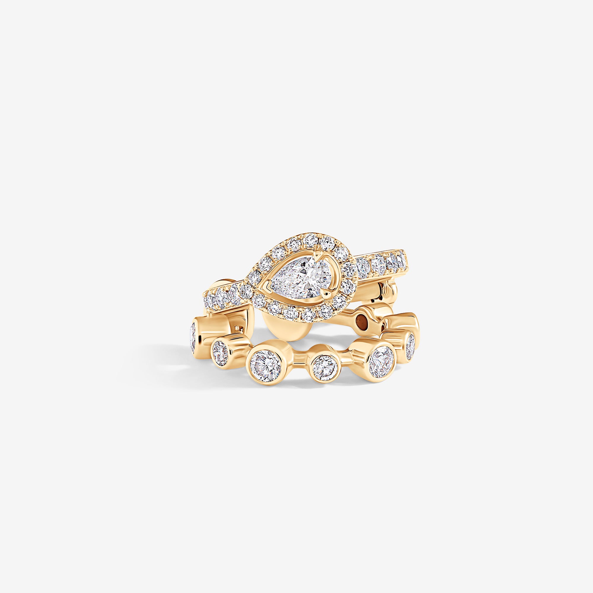 Trilogie Radiance Forever single clip earring with pear-shaped diamond crafted in 18K yellow gold and set with round brilliant, emerald cut and pear-shaped diamonds.