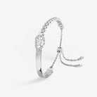 Dualité Signature bracelet crafted in 18K white gold and set with round brilliant diamonds and a central pear-shape diamond.