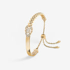 Dualité Signature bracelet crafted in 18K yellow gold and set with round brilliant diamonds and a central pear-shape diamond.