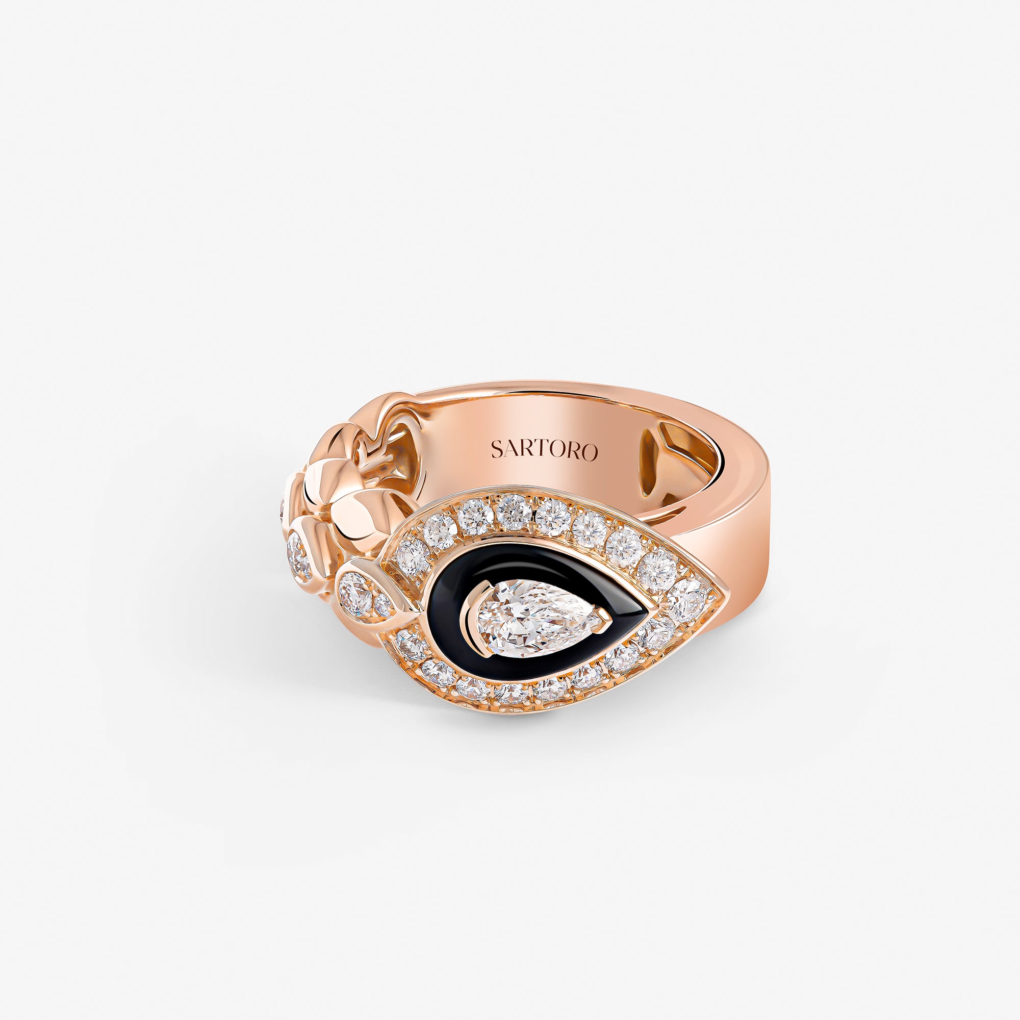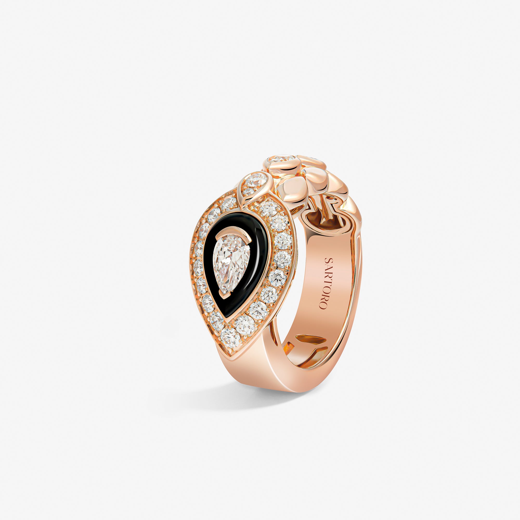 Dualité Signature medium ring with onyx crafted in 18K rose gold and set with round brilliant, pear-shape diamonds and onyx.