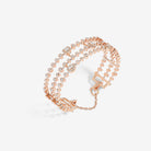 Trilogie Radiance Signature three row bangle crafted in 18K rose gold and set with round brilliant, emerald cut and pear-shaped diamonds.